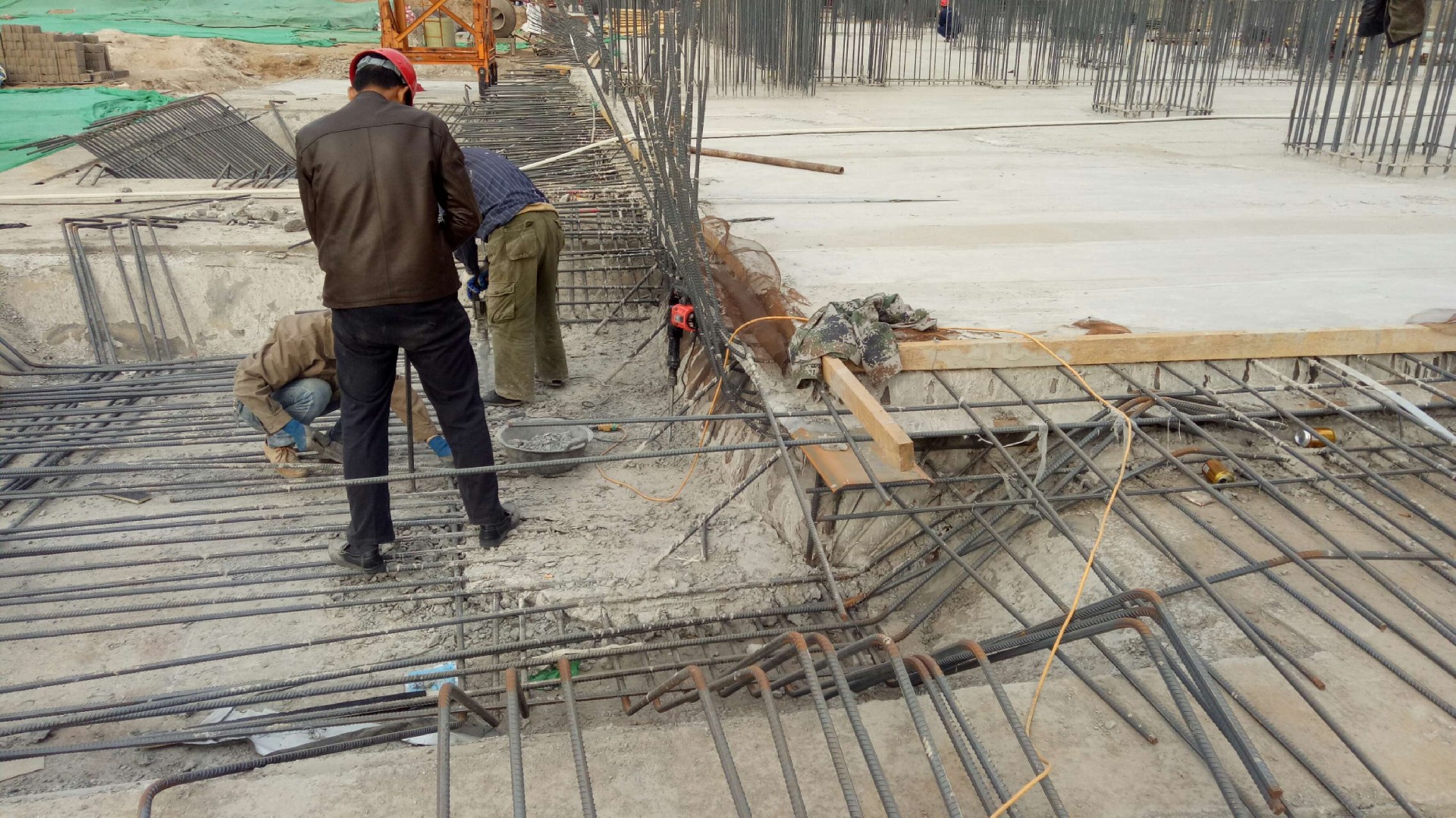5、采用與原混凝土設計強度相同的微膨脹混凝土進行澆筑和修復,需用¢12鋼筋仔細夯實。