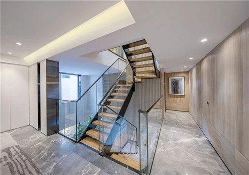3、在設(shè)計(jì)樓梯時(shí)我們要根據(jù)室內(nèi)裝修風(fēng)格確定樓梯的樣式、材質(zhì),比如說后現(xiàn)代風(fēng)可使用鋼化玻璃、鋼板裝修樓梯等等。我們?cè)谘b修樓梯時(shí)要做好樓梯燈光的處理,樓梯靜音的處理工作等等,例如我們可考慮在樓梯踏步處安裝感應(yīng)燈等等。