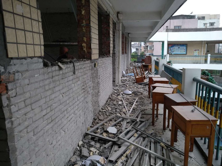 樓下設(shè)置了柵欄,并設(shè)置了人員看守,以免傷害行人。
