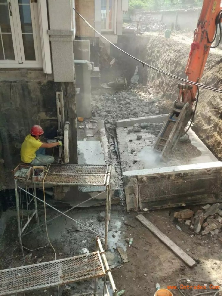 確定拆除位置→設置樓板底部第二步和次梁的支撐架第一步樓板開孔→→→定位線探孔→→→→鉆孔清除第一道水鉆施工渣并清孔→根據(jù)探孔準確放置鉆孔線→樓板混凝土鉆孔一步及樓板運孔第二步施工方法:→第三步設置臨時圍欄,在樓板底部豎立支撐架→破壞樓板混凝土→拆除樓板底部支撐架,重復上述步驟循環(huán)直到所有的臺階都被移除。