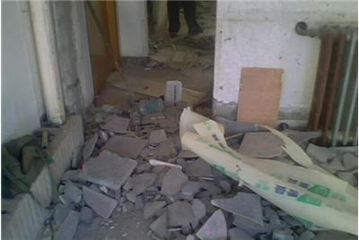 其次,裂開的樓板基本都是新手拆遷工,魯莽??上攵?,一個(gè)人敢從下面拆一堵紅磚墻,后果就是打掉找平層