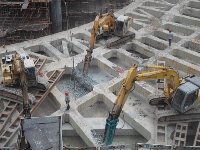 3、切割與靜破碎聯(lián)合拆除:對(duì)于可放置大型起重機(jī)但有局部限制的基坑部分,可采用機(jī)械切割與靜破碎同時(shí)施工的方法,****地保證施工程度。同時(shí),對(duì)切割破碎隊(duì)伍數(shù)量的要求也比較低。