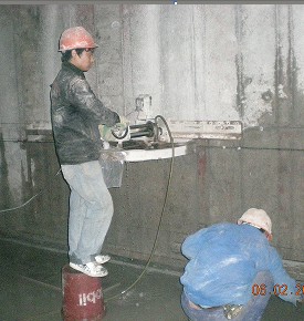 (1)、施工工藝:根據設計要求,必須對原結構混凝土墻體進行無振動切割,以免對原結構的破壞和干擾。針對這一要求,在切割施工中,使用水鉆切割施工具有施工速度快、效率高、無振動、不會對整體建筑結構造成破壞等優(yōu)點。