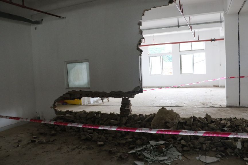 堅(jiān)持認(rèn)真拆除上述墻體為壓重懸臂部件(構(gòu)件)和各種架空、垂直構(gòu)件、管件;