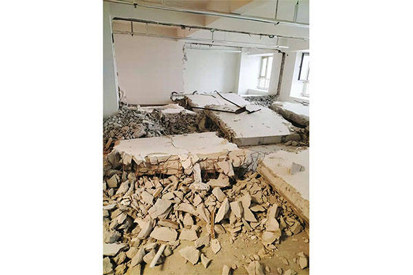 4.拆除樓板:不得損壞或加固樓板,以確保后續(xù)施工的安全?;炷翗前宀鸪蛛x后,碾壓到原來的位置,保證拆除不會損壞結(jié)構(gòu)的周邊部分。