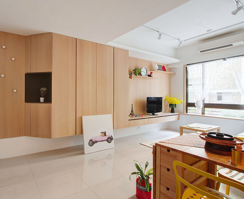 如果廚房外的區(qū)域也有一個小陽臺,那么不妨在陽臺的角落放置一個純粹清理外表的儲物柜,存放一些不常用的物品。也可以將清洗拖布、晾曬衣物的家務(wù)移到這里來進(jìn)行,這樣就算廚房與衛(wèi)生間面積偏小,為了日常的清潔工作,也不必在廚房里放一個與設(shè)計風(fēng)格徹底不搭界的清洗盆了。