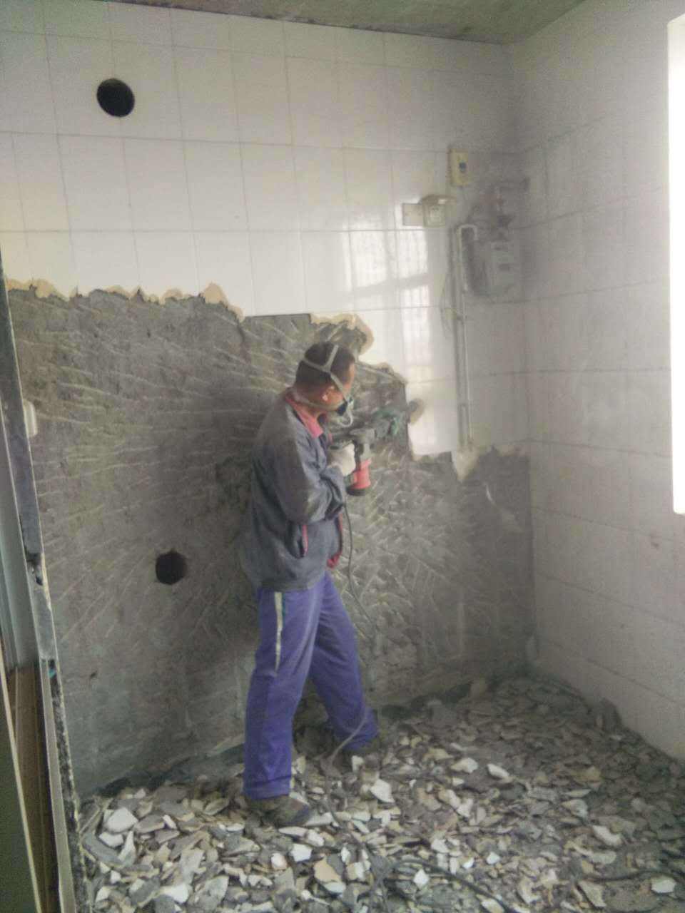 墻面瓷磚常見(jiàn)于廚房和衛(wèi)生間等接觸油污潮濕較多的環(huán)境內(nèi)。墻瓷磚后面是用水泥砂漿當(dāng)粘貼劑的,這一層與原來(lái)的墻面粘的不是很牢,只要出現(xiàn)開(kāi)口,就會(huì)一片一片地脫落,但是想要順利拆除還是很麻煩的一件事情。拆除過(guò)程中均會(huì)出現(xiàn)作為粘接劑的水泥灰不規(guī)則的依舊粘浮在原結(jié)構(gòu)表面,要將連接不牢靠的部分做局部清理,否則會(huì)直接影響到后續(xù)施工。