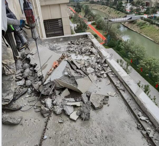 在切割拆除過程中**考慮結(jié)構(gòu)的穩(wěn)定性及安全性,混凝土結(jié)構(gòu)切割施工前,梁板底等部位應采取臨時支撐措施,關(guān)鍵部位需對原結(jié)構(gòu)進行加固,待加固構(gòu)件達到設計要求后方可進行后續(xù)混凝土切割工作。