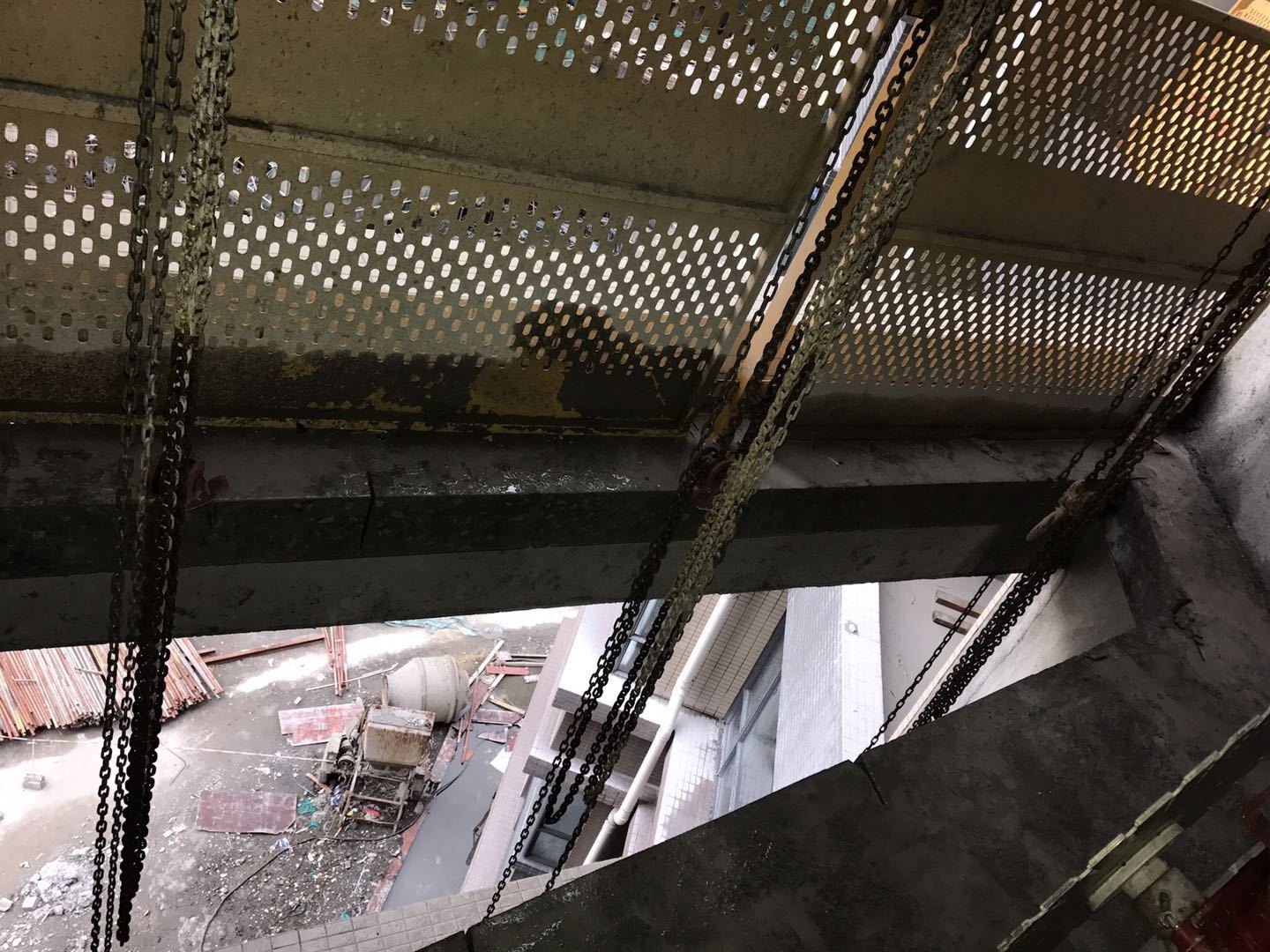 (7)、切割完后采用2個(gè)手拉葫蘆將切割好的樓板吊裝輕放至下層樓面或地面。